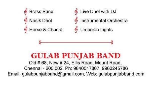 Gulab Punjab Band is a music band based in the city of Chennai. Every baarat is incomplete without a band that plays an amazing tune on which you can do the Nagin dance